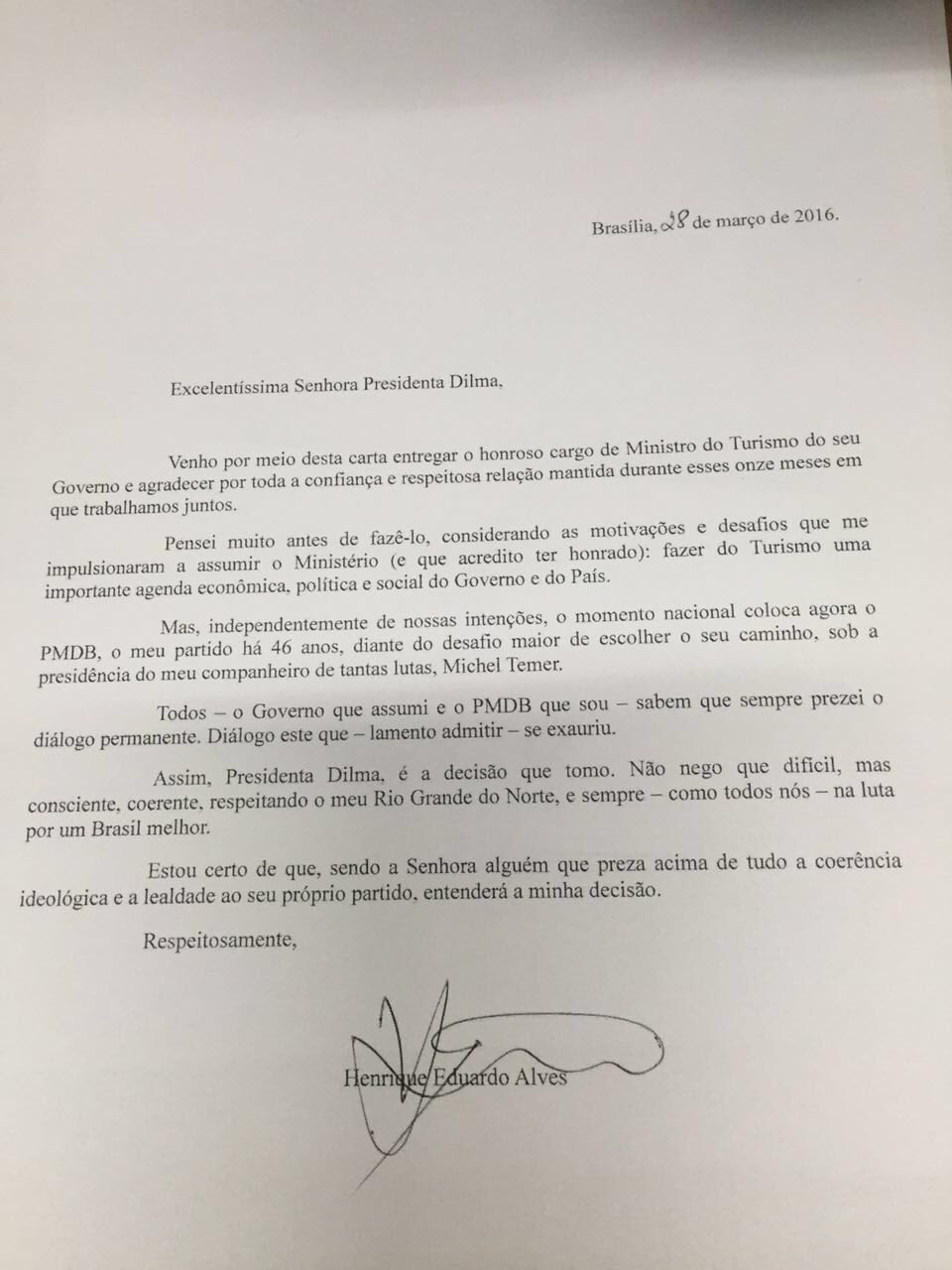 Ministro Henrique Alves entrega carta de exoneração do ministério do Turismo.